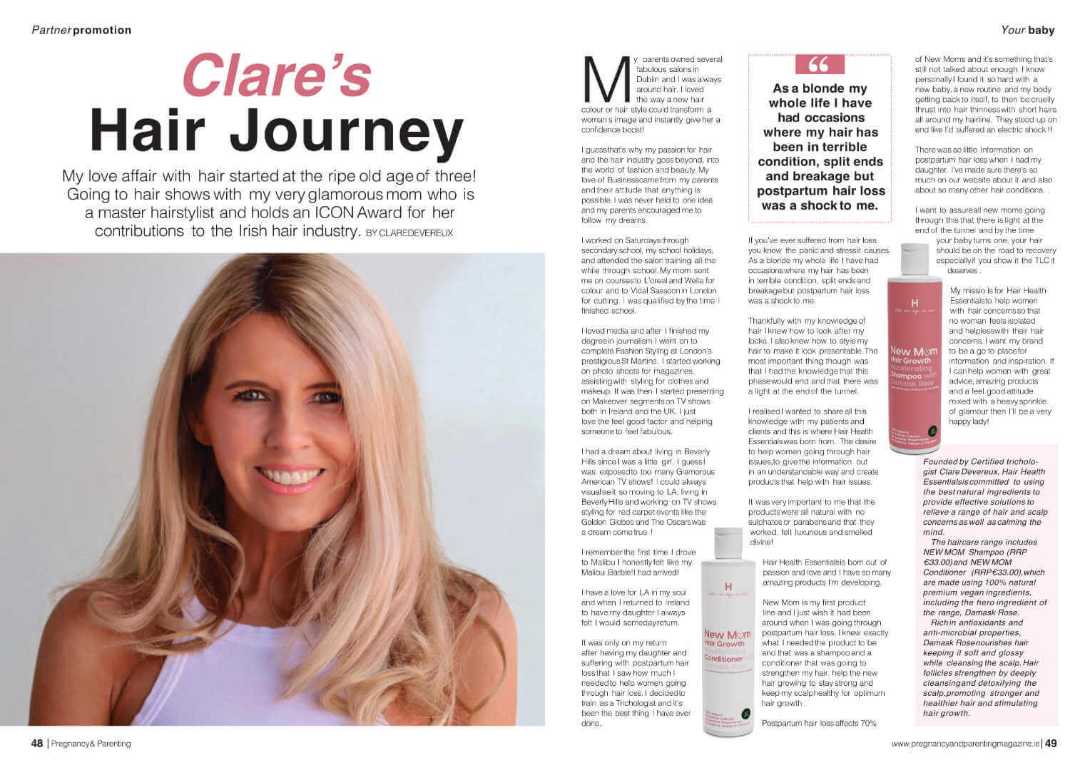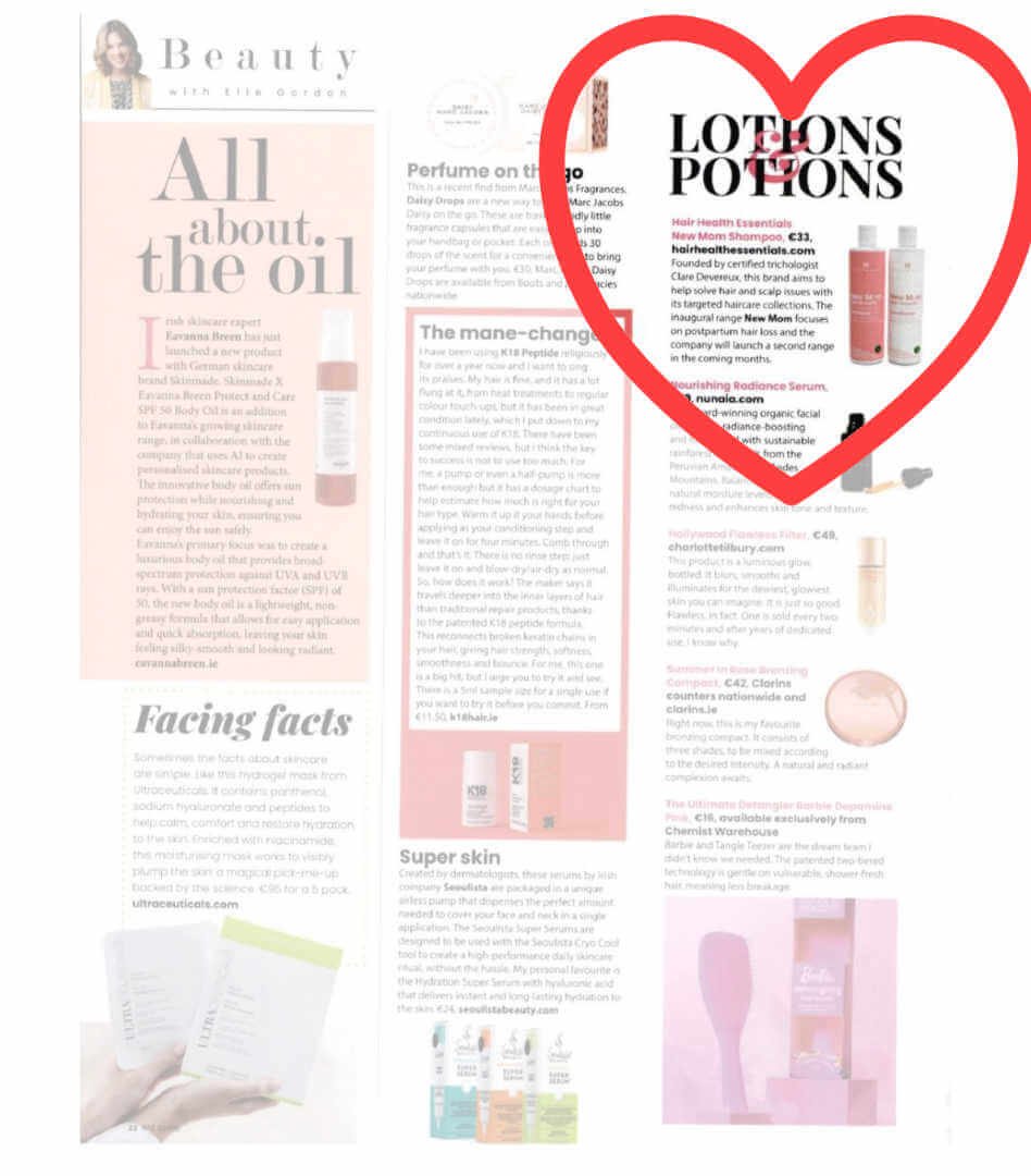 Press, Social, DigitalMediaPregnancy & Parenting MagazineFeature on our Founder Clare Journey to creating Hair Health Essentials. RTE GuideFeature on our New Mom Collection.